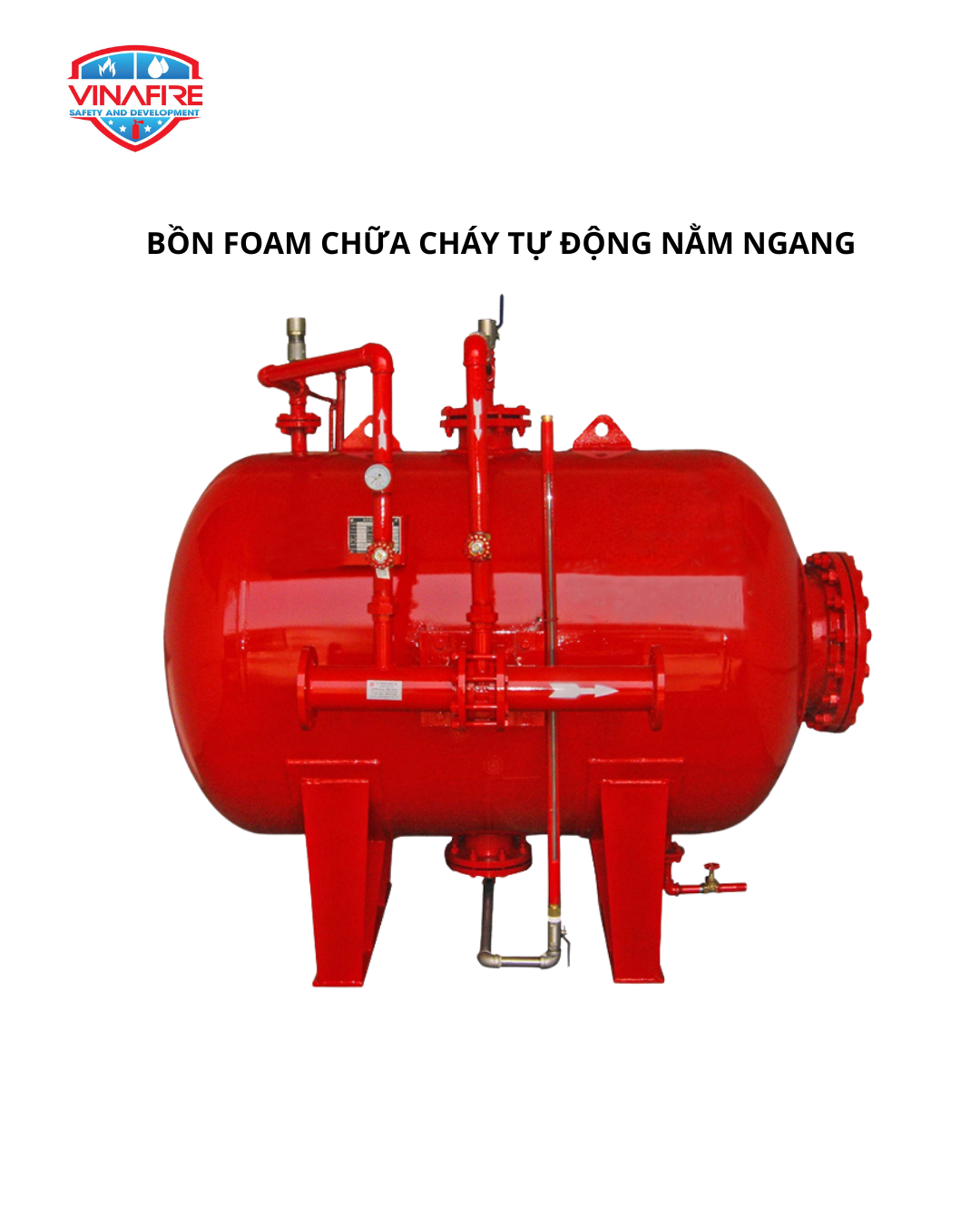- Tổ hợp bồn chứa foam bao gồm đầy đủ phụ kiện yêu cầu: thước kiểm tra mực nước, các van ứng dụng và các đồng hồ kiểm tra áp suất.