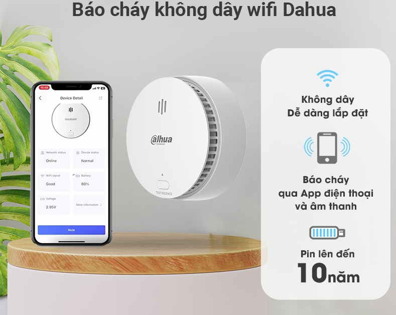 Sản phẩm sử dụng cảm biến quang điện độ nhạy cao, kết hợp kết nối WiFi 2.4GHz giúp người dùng giám sát và nhận cảnh báo cháy qua điện thoại di động mọi lúc, mọi nơi thông qua ứng dụng Dahua Life hoặc Imou.