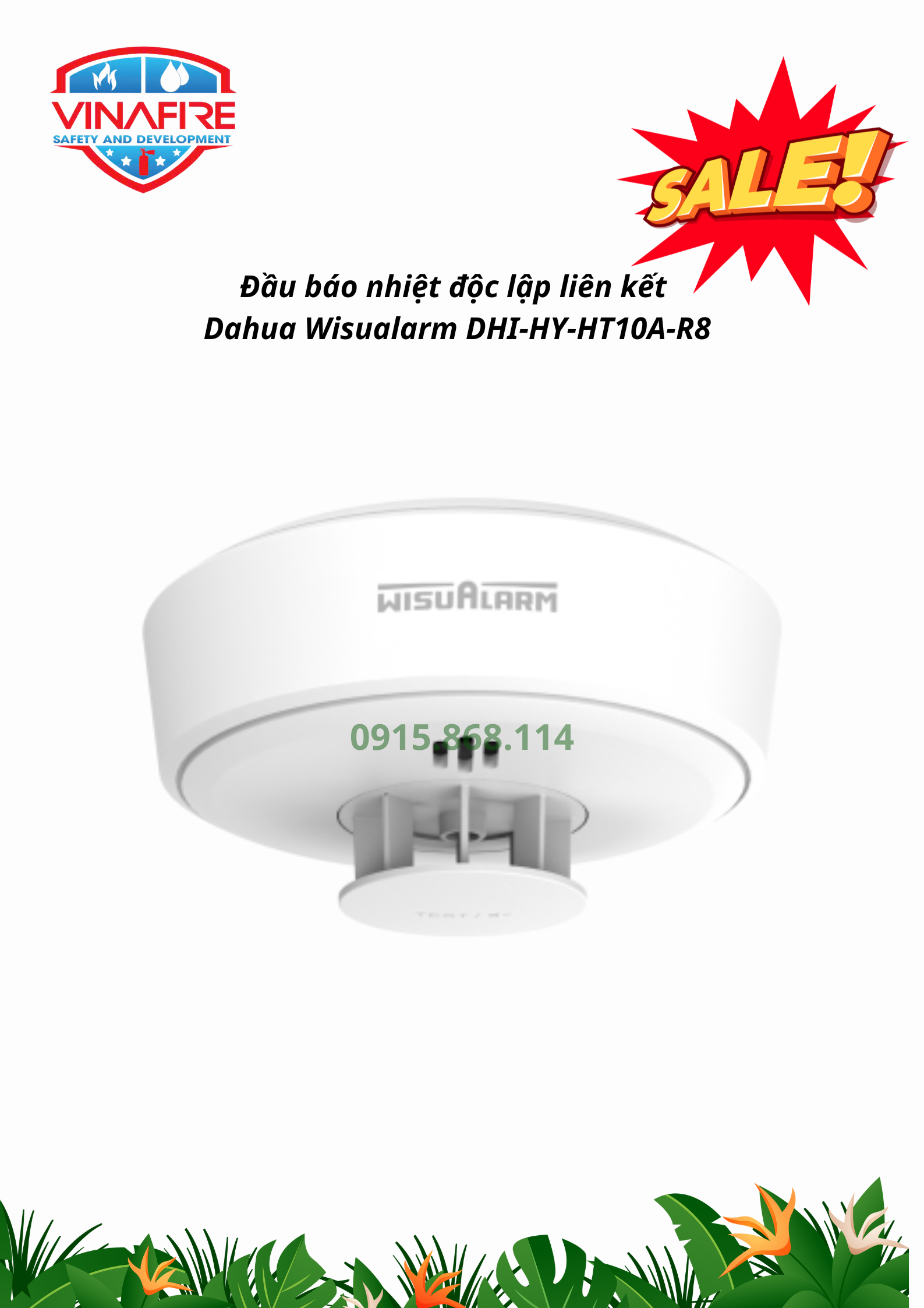 Đầu báo nhiệt độc lập liên kết Dahua Wisualarm DHI-HY-HT10A-R8 là thiết bị phát hiện nhiệt độ tăng bất thường, giúp cảnh báo cháy sớm trong các khu vực dễ phát sinh nhiệt như nhà bếp, gara, kho hàng, nhà máy…